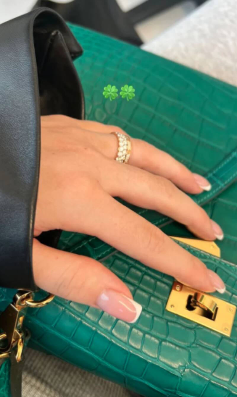 Fue en días recientes que la magnate de la belleza subió una foto a sus redes sociales para mostrar su exclusivo bolso de la marca Hermès de piel verde, sin embargo, lo que más llamó la atención fueron las joyas que tenía en su dedo, ya que presuntamente serían de nupcias.