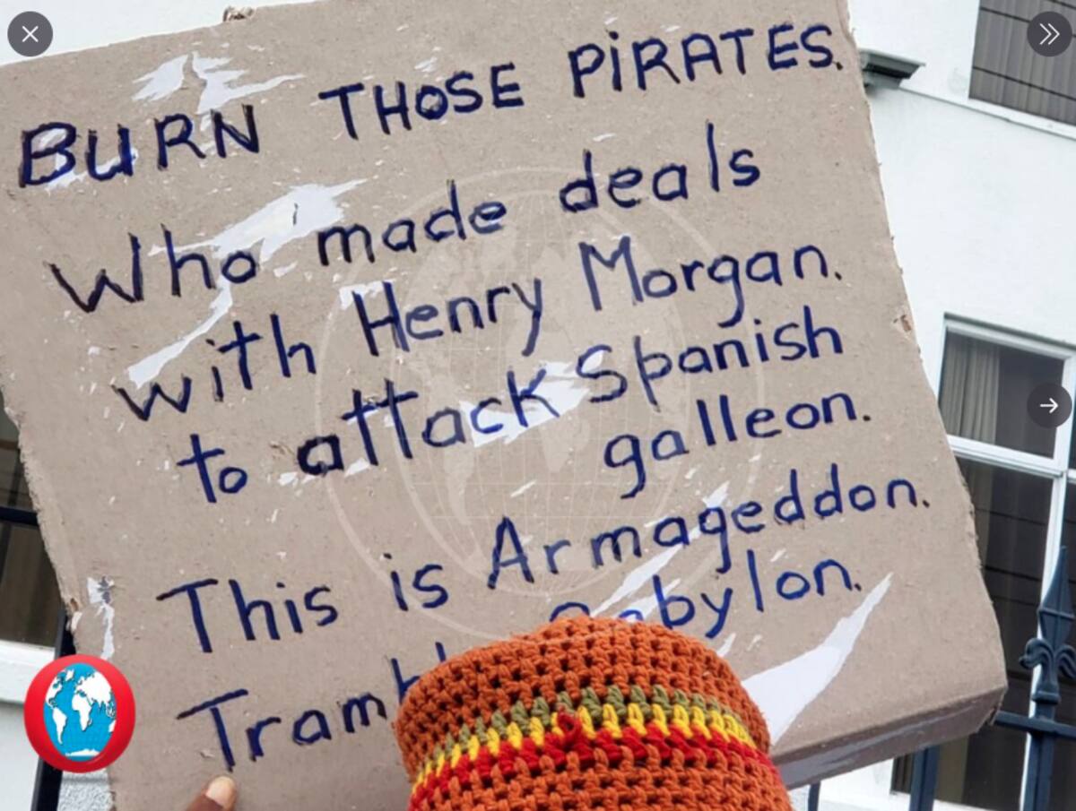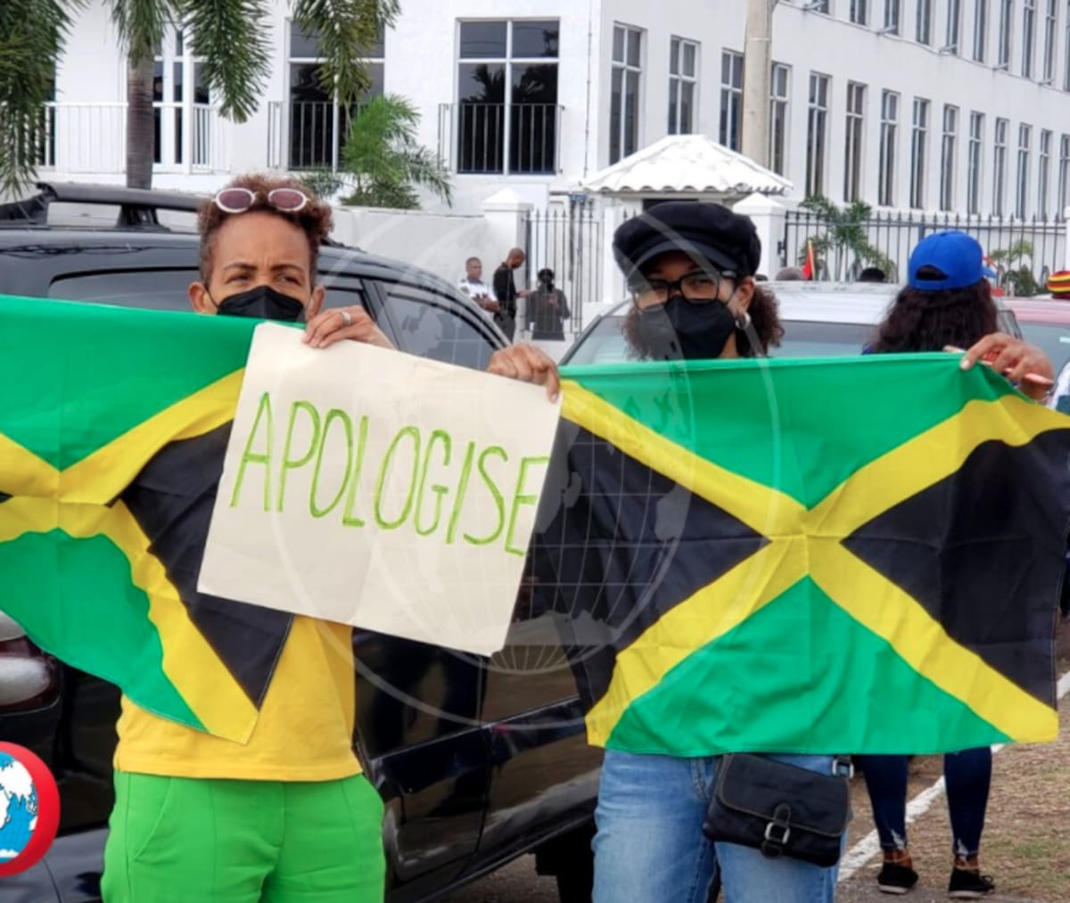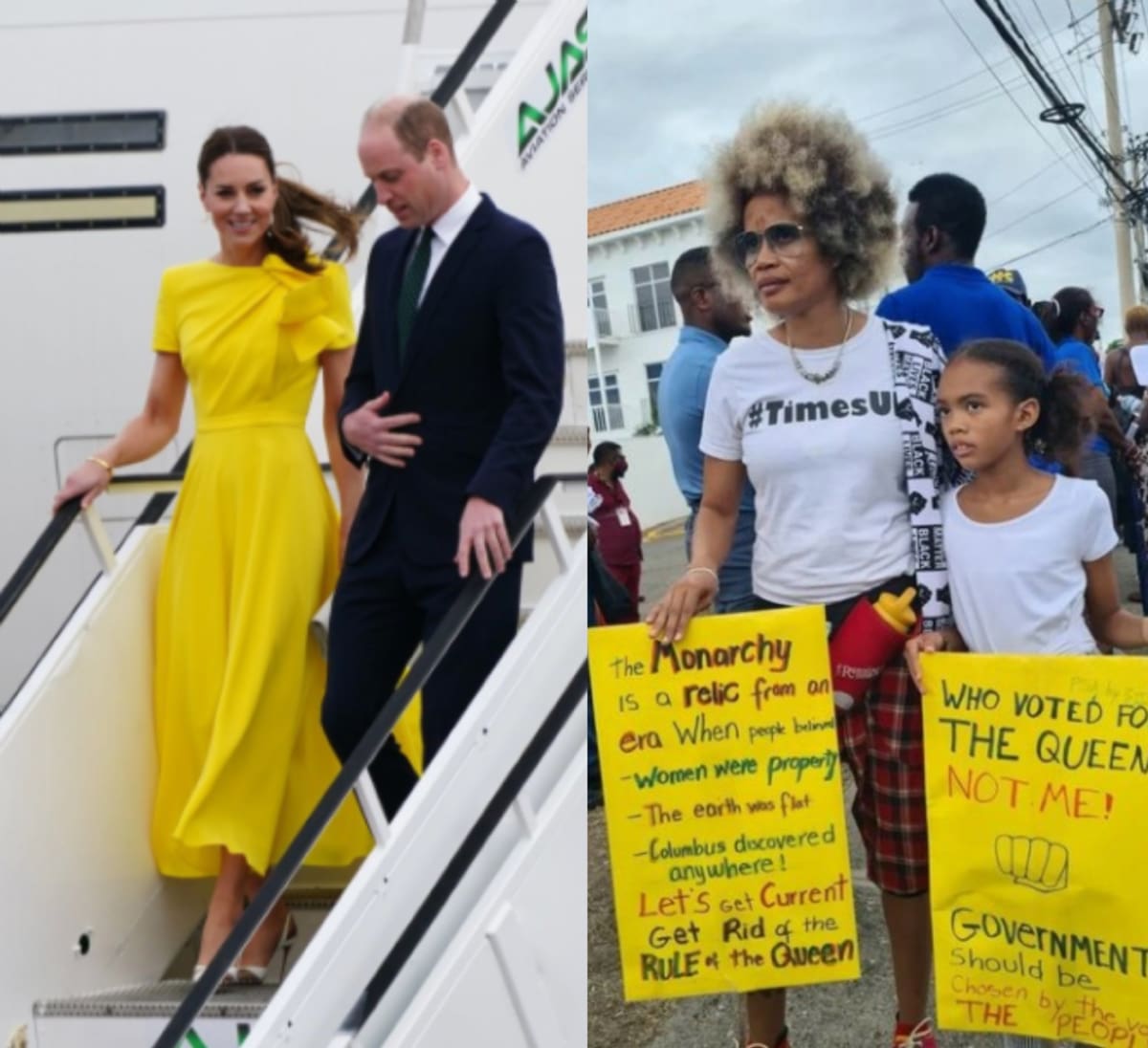 En imágenes difundidas por Jamaica Observer, se puede ver a diversas personas manifestándose en contra de la visita de los miembros de la Familia real, portando pancartas en las que aseguraban que ellos no querían ahí al nieto de la reina Isabel II y su esposa y también les exigían una disculpa por la esclavitud que sufrieron sus antepasados.
