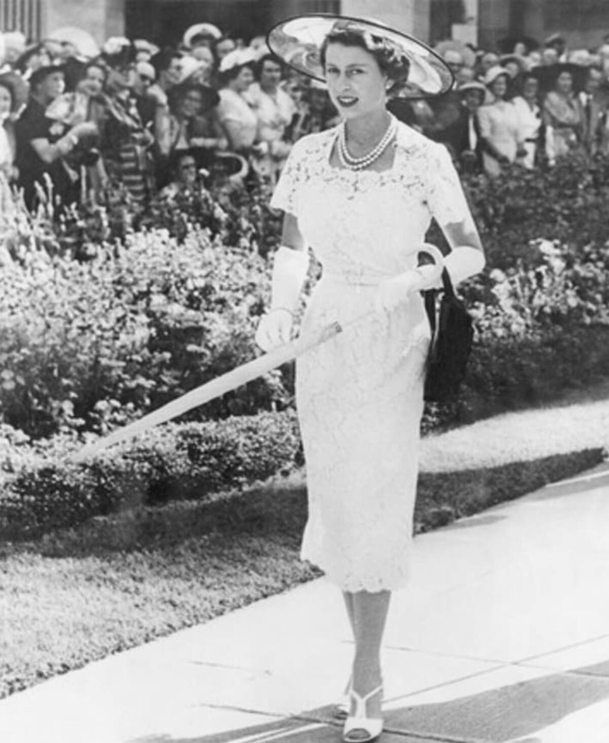Para esta ocasión, Kate Middleton vistió una prenda de encaje de silueta entallada que tenía un romántico listón a modo de cinturón y falda a la rodilla de Alexander McQueen y sombrero Philipp Treacy. Lo que más llamó la atención es que ese atuendo es casi idéntico al que lució la Reina Isabel en 1954 durante su visita a Sídney, Australia.