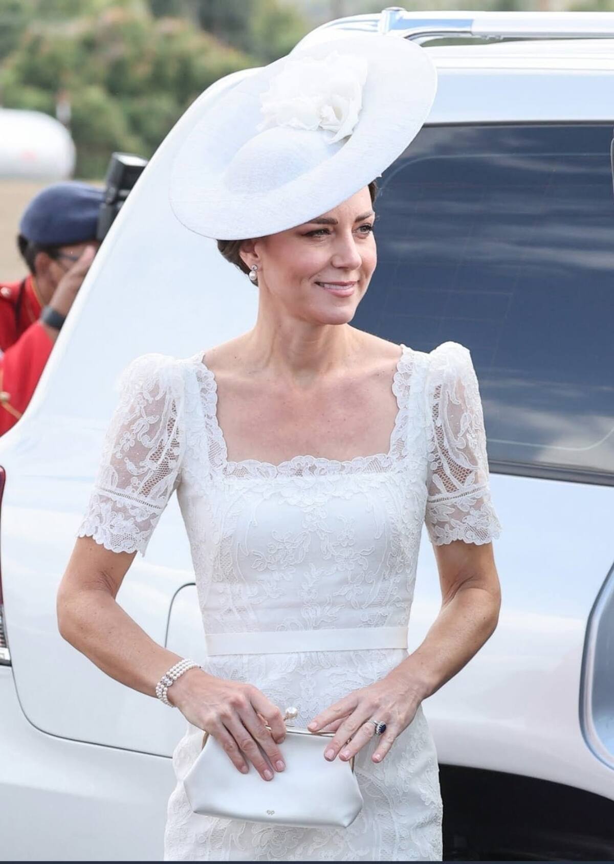 Tras haber impresionado con su traje de gala en Jamaica, Kate Middleton robó suspiros con uno de sus atuendos más especiales durante esta gira por el Jubileo Platino de la reina Isabel II, al lucir un elegante vestido blanco lleno de encaje que hacía un guiño muy especial a la monarca británica.