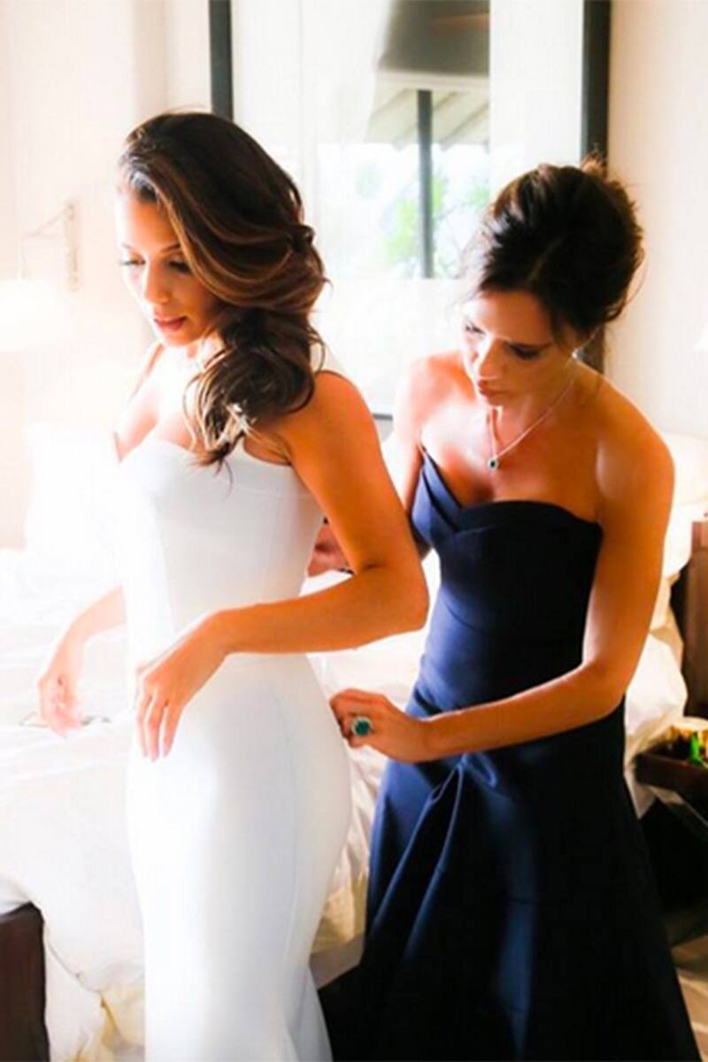 La actriz confesó, en una entrevista pasada para la revista People, que para su boda con el mexicano, sabía que su mejor amiga Victoria Beckham era la indicada para ayudarla con su vestido de novia.