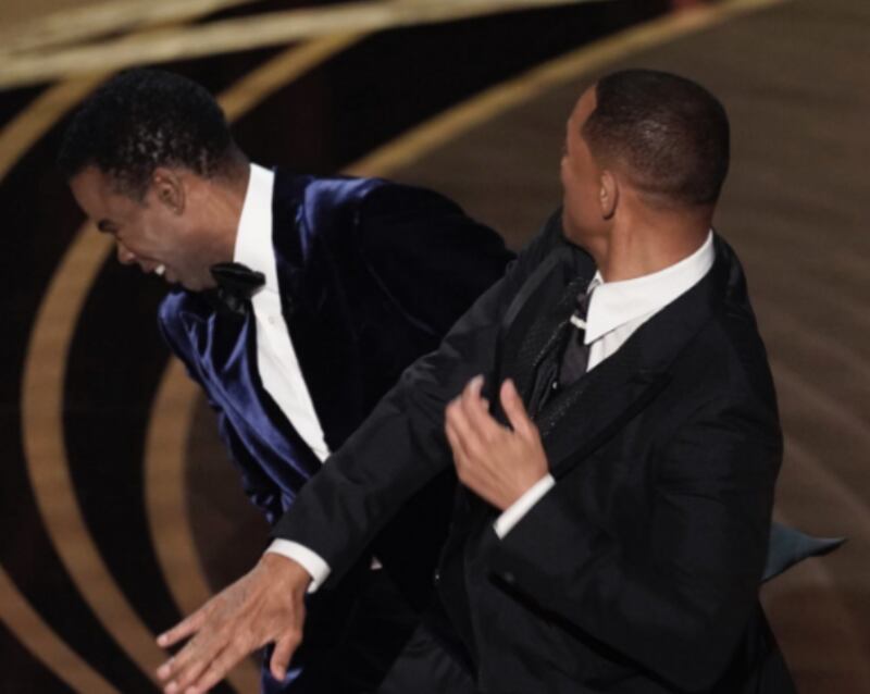 El hecho desconcertó a todo el público pues por un momento se pensó que era parte del show hasta que el ambiente se tornó hostil y tenso. La confirmación de que el golpe fue real vino cuando Will subió al estrado a recibir el Oscar a Mejor Actor por su trabajo en la cinta King Richard, en su discurso se disculpó y justificó su actor de violencia en nombre del amor.