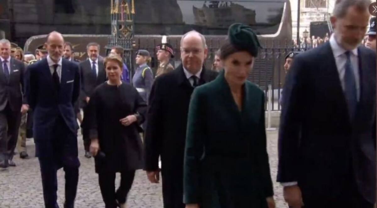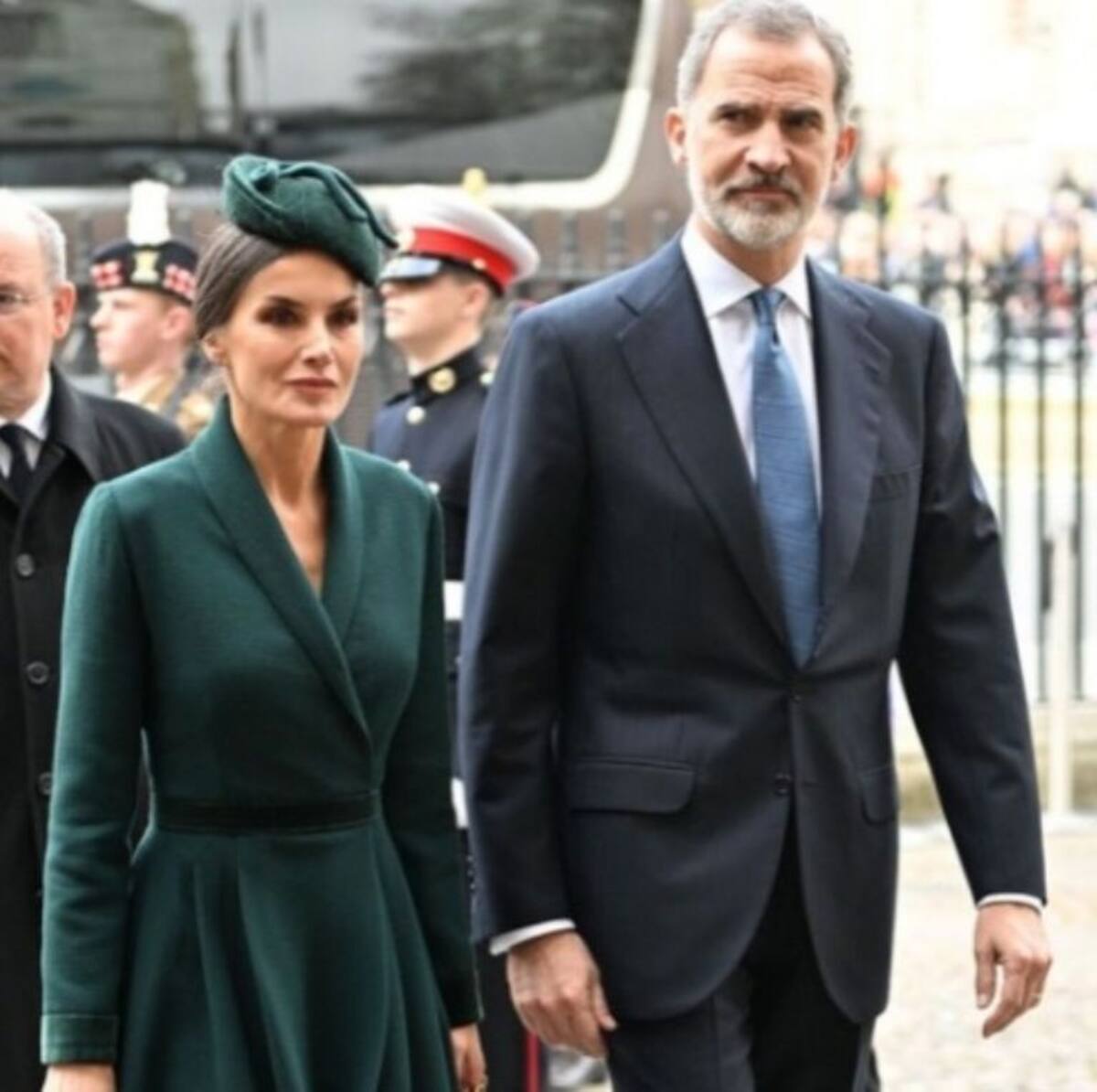 Don Felipe y Doña Letizia fueron los primero en confirmar su asistencia a la abadía de Westminster, los reyes de España siempre fueron muy cercanos al príncipe Felipe, lo llamaban “querido tío Philip”. Letizia fue una de las asistentes que vistió de verde militar.