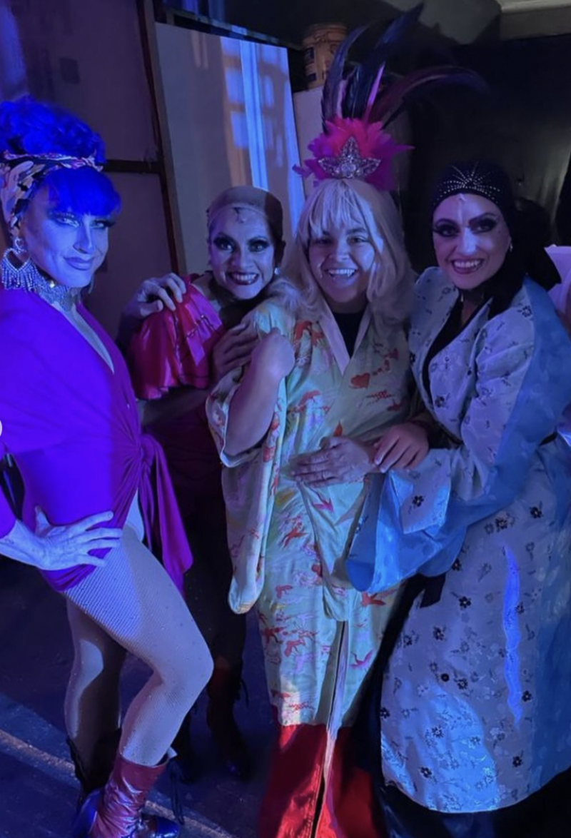 Las instantáneas, en las que usa peluca, forman parte de su caracterización para la puesta en escena en la que trabajó, La jaula de las locas, en la cual debutó como actriz hace unos meses.