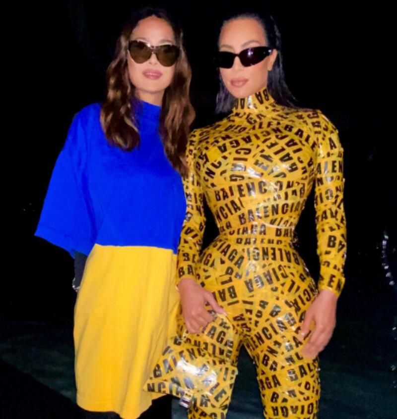 El desfile de Balenciaga se convirtió este domingo en una defensa contra la guerra en Ucrania de la mano del director creativo de la marca, el georgiano Demna Gvasalia, quien organizó una de las pasarelas más emotivas y reivindicativas de los últimos días, donde asistieron celebridades de gran importancia como Salma Hayek y la socialité, Kim Kardashian.