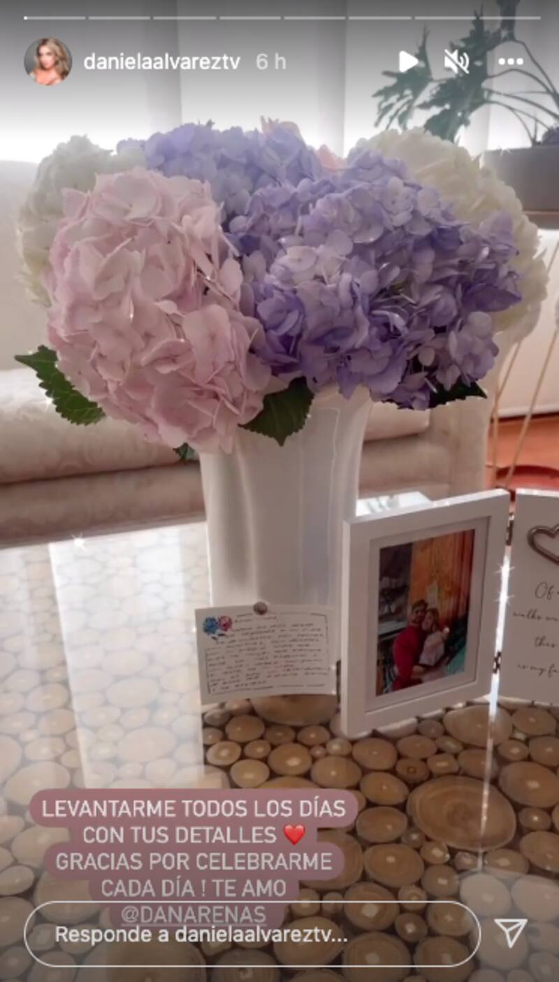 "Levantarme todos los días con tus detalles, gracias por celebrarme todos los días. Te amo, Daniel Arenas", escribió la también presentadora en el video en el que mostraba su regalo.