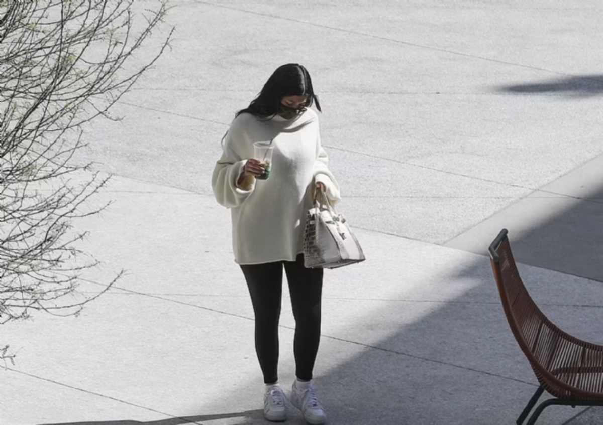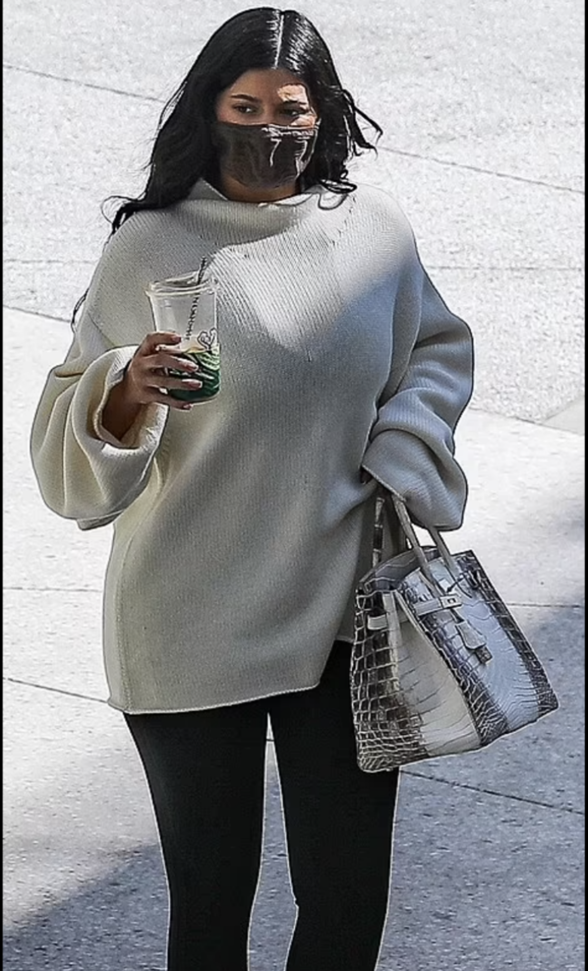 La joven empresaria, de 24 años, eligió unos pantalones negros que combinó con un suérter color crema holgado, tenis y una lujosa bolsa de Hermès Birkin con valor de más de 250 mil dólares, para su primera salida en Los Ángeles. Ahí se le vio consintiendo a la pequeña Stormi, de cuatro años, a quien cargó mientras caminaba.