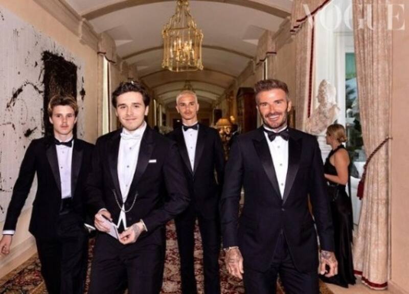 Entre las fotografías que ha dado a conocer compartió una que se ha convertido en la favorita de los cibernautas: los hombres Beckham. Cruz, Romeo, David y el novio, Brooklyn, posaron muy sonrientes con los smoking que usaron para la ceremonia. La ahora esposa no quiso pasar por desapercibido el momento en el que iba del brazo de su padre y subió a redes cuando captaron este instante.
