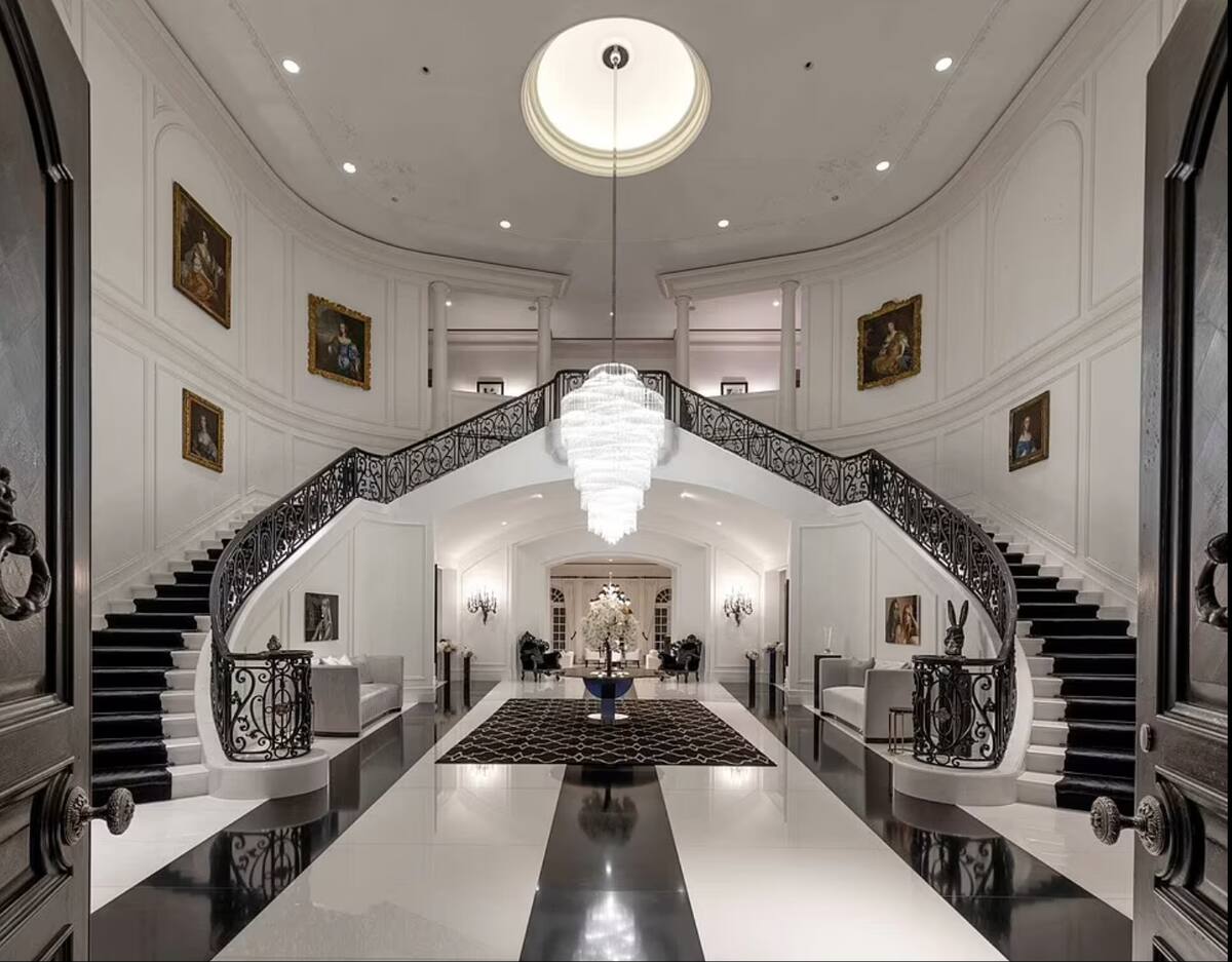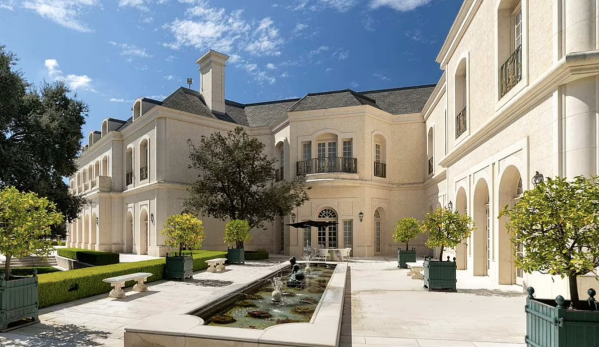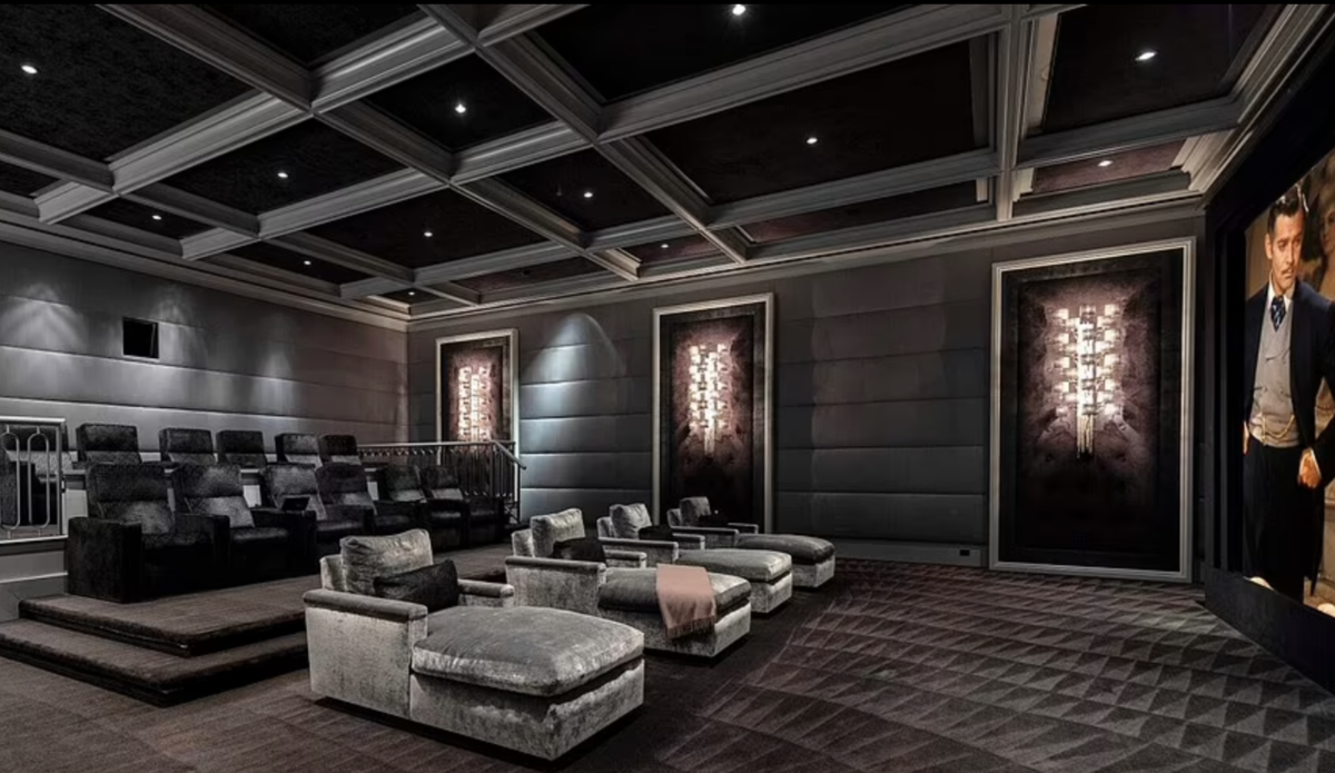El inmueble de 17 mil metros cuadrados, valuado en 165 millones de dólares, cuenta con 14 habitaciones y 27 baños, además de salón de belleza, un lujoso cine, más de 100 lugares de estacionamiento, una alberca con jacuzzi, cancha de tenis y pista de boliche.