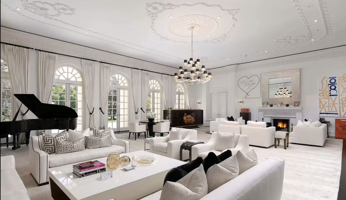 La mansión, que tiene como vecinos a la menor del clan Kardashian-Jenner, Kylie Jenner, fue previamente vendida por la esposa de Spelling, Candy, a la multimillonaria británica Petra Ecclestone quien remodeló el lugar y lo puso a la venta por 120 millones de dólares y fue adquirida por un comprador anónimo de Arabia Saudita en el 2019.
