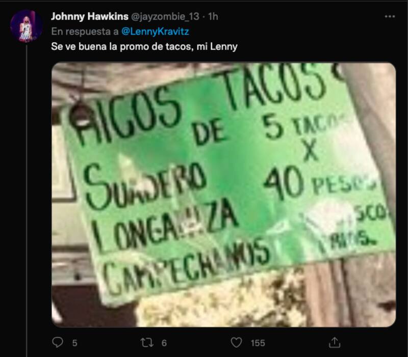 "Todos excitados porque Lenny anda en CDMX y uno que se emociona por ver ese letrero de 5 tacos por $40", fueron algunos comentarios que recibió el músico en la publicación.