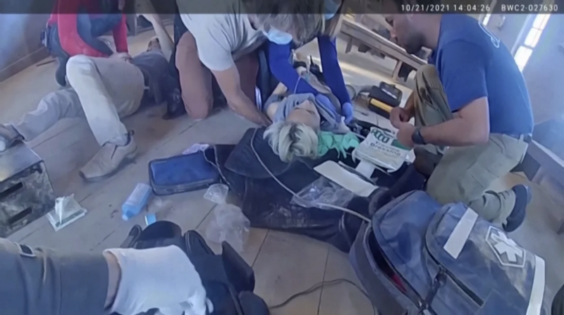 Las dramáticas imágenes fueron difundidas por la Oficina del Alguacil del condado de Santa Fe. En el clip se observan a los paramédicos y oficiales socorrer a la cinefotógrafa, que aún estaba viva, y al director Joel Souza previo a que los trasladen en las camillas hacia la ambulancia.