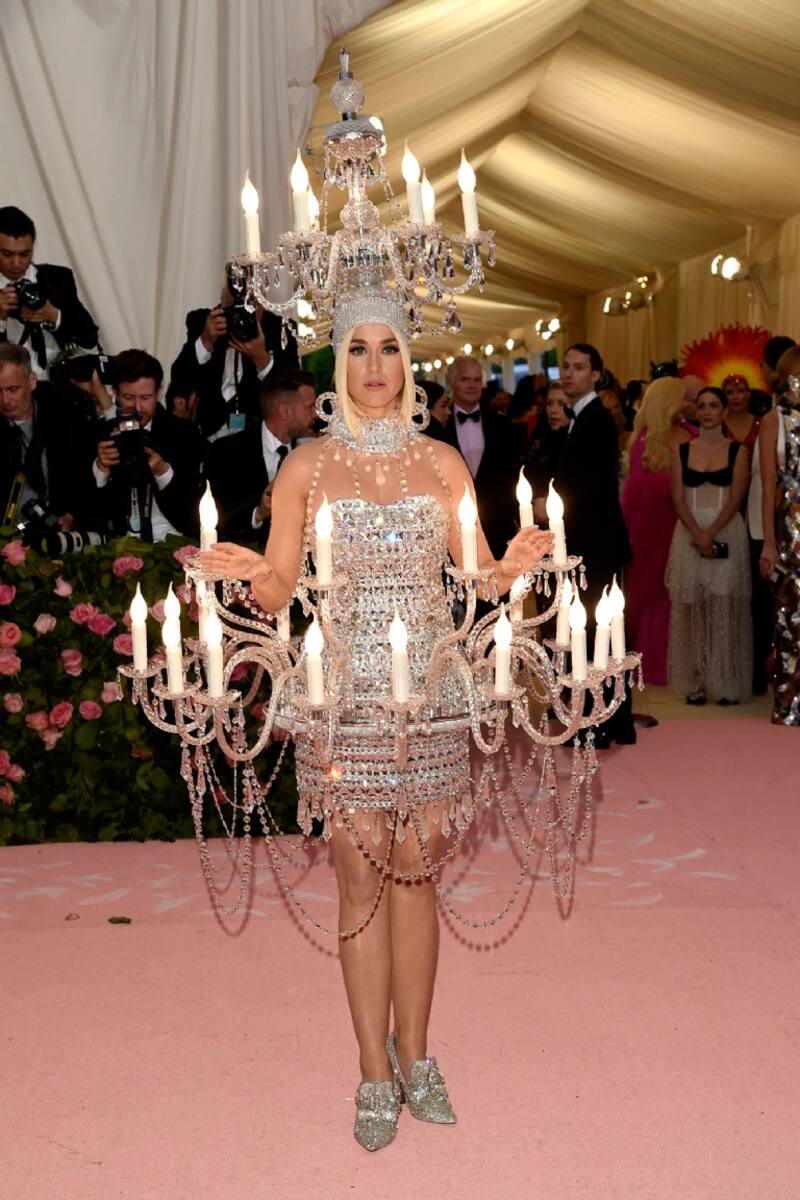 Estos comentarios, se deben a los trajes que ha usado la cantante Katy Perry en sus ultimas presentaciones a la gala. En el 2019, la intérprete de Firework, asistió al evento usando como vestido una lámpara estilo araña de cristal, la cual fue obra de Moschino. Un atuendo que después cambió por un llamativo traje de hamburguesa.