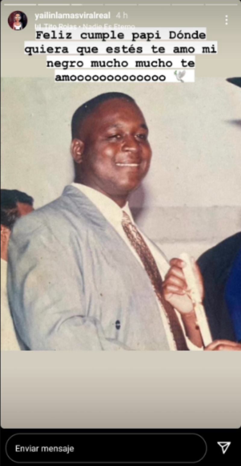 La artista  subió una foto en donde se ve al señor sentado en una silla y le dedicó unas emotivas palabras: “Feliz cumple papi. Dónde quiera que estés te amo mi negro mucho mucho, te amo”.