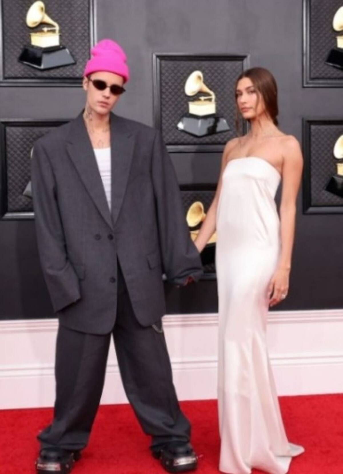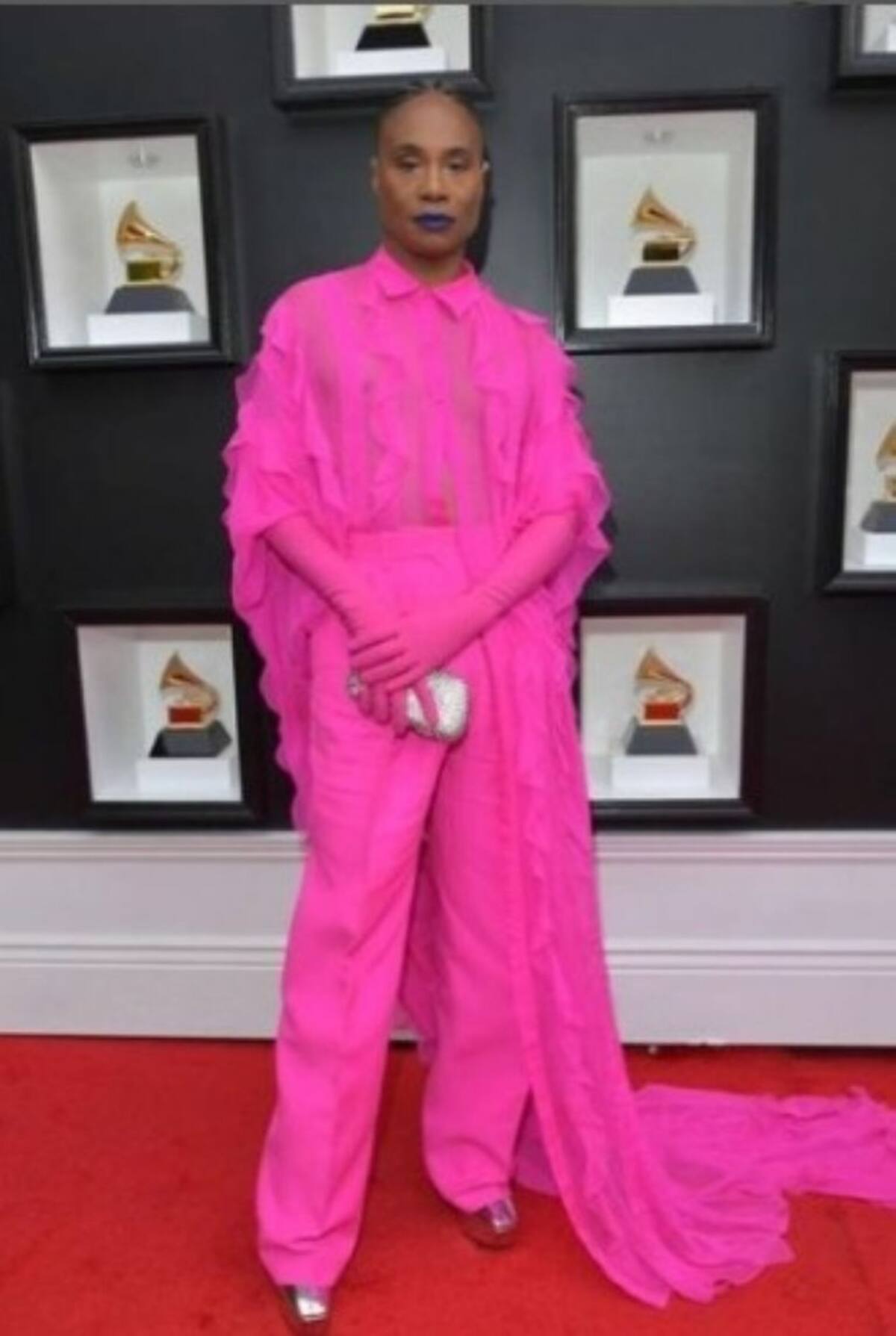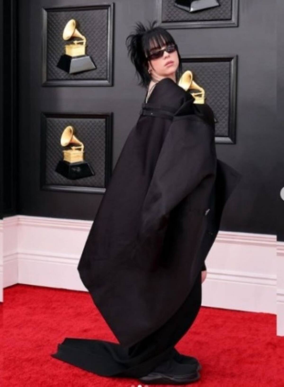 Billie Eilish, quien recientemente se hizo acreedora de un Oscar, llega a la gala manteniendo el look en color negro; la cantante compite en la categoría Mejor álbum del año. En comparación a las anteriores entregas de premios enfocados en cine, música, series, etc, donde un color predominaba en las vestimenta, la edición número 64 de los Grammy ha sido diferente destacando por los diferentes outfits que se han presentado; la gama de colores es variada, desde el más formal como el negro, hasta los tonos pastel.