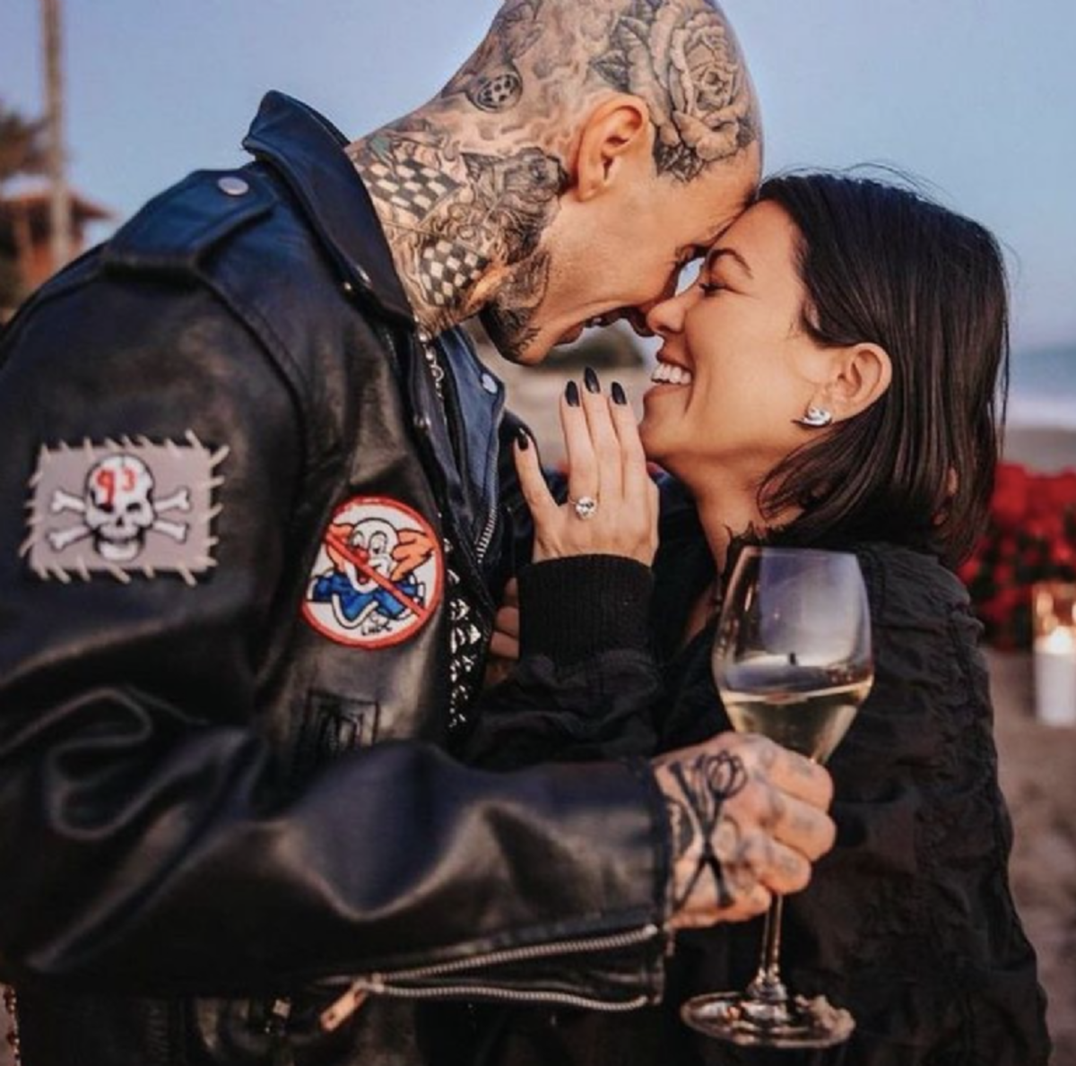 Travis le propuso matrimonio a la protagonista de The Kardashians el pasado mes de octubre en una romántica cena que tuvieron a la orilla de la playa en Montecito, California. Ahí el músico preparó todo un escenario con rosas rojas y velas para declararle su amor a Kourtney que recibió el anillo muy enamorada.