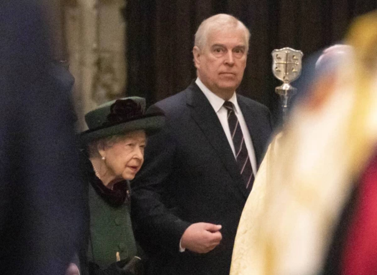 Los servicios religiosos que se ofrecieron en honor al príncipe Felipe a finales del mes de marzo, la monarca británica llegó del brazo de su hijo, el príncipe Andrés, quien la acompañó desde Windsor hasta la abadía de Westminster, luego de haber resuelto de manera económica, la demanda de abuso sexual de la fue expuesto semanas antes.