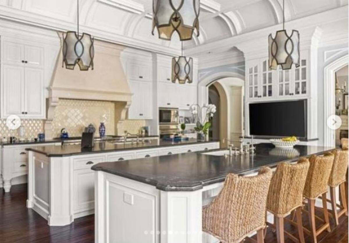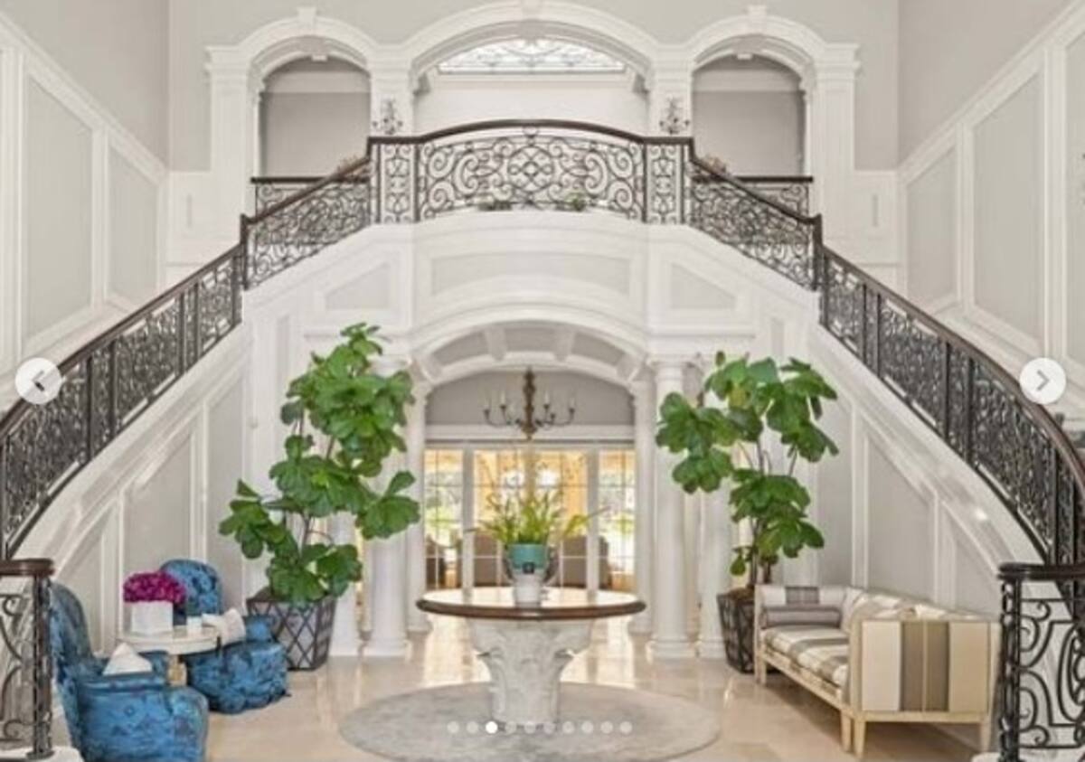 Ubicada en el vecindario de North Beverly Park, la casa diseñada por Richard Landry, conocida como la finca "The Premiere", también cuenta con una entrada de dos pisos y una biblioteca con paneles de dos pisos.