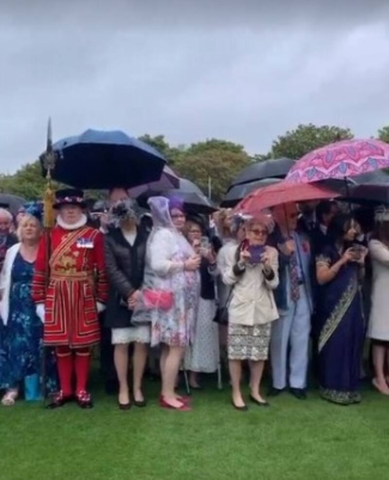 Todos deben tener la oportunidad de intercambiar algunas palabras con la soberana antes de que el banquete con comidas y bebidas inicie, la música es fundamental, así que siempre habrá una banda tocando melodías selectivas. Por las imágenes que se dieron a conocer, se puede saber que había una lluvia ligera, todos portaban sus paraguas para cubrirse.