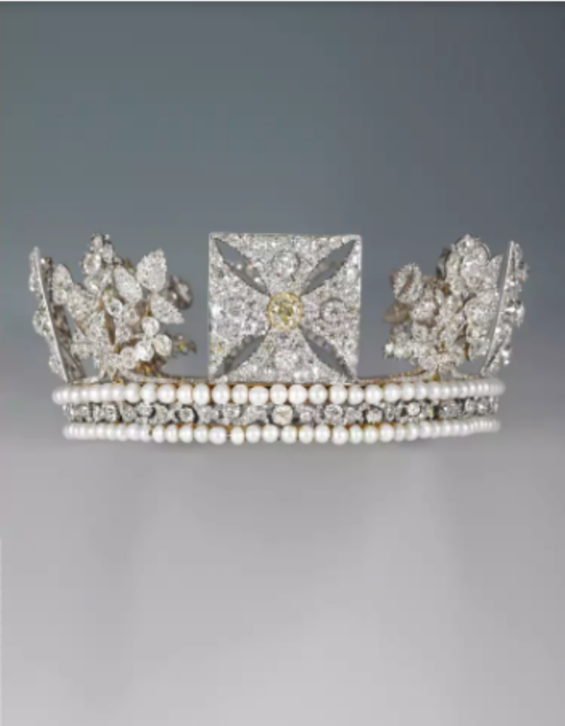 Entre las joyas expuestas se encuentra su famosa diadema de diamantes, con 1.333 diamantes talla brillante, dos filas de perlas y diamantes engastados en forma de rosa, cardo y dos tréboles para representar a Inglaterra, Escocia e Irlanda. Esta será exhibida en el Palacio de Buckingham, junto con retratos oficiales de la soberana tomados por la fotógrafa Dorothy Wilding.