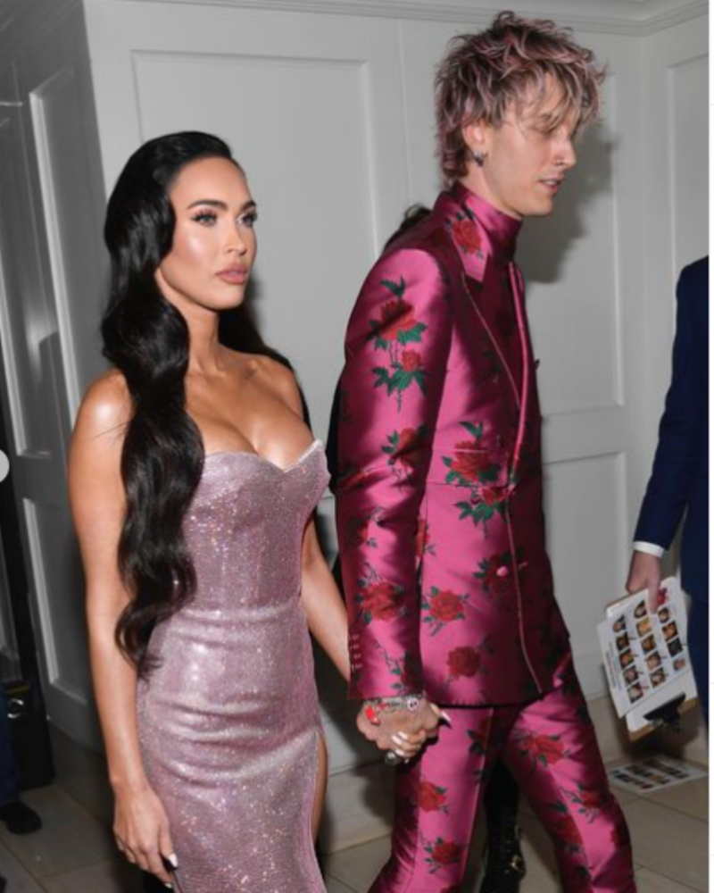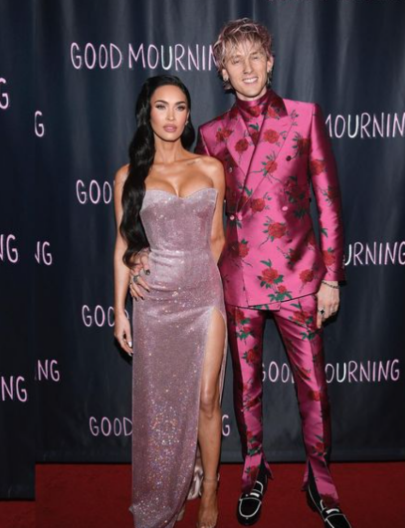 Gun Kelly, quien además de protagonizar la historia también estuvo a cargo de la dirección, tenía que llevar el mejor outfit y qué mejor si lo combinaba con un tono similar al de Megan, es por ello que decidió llevar el traje rosa y lo complementó con unos zapatos negros.