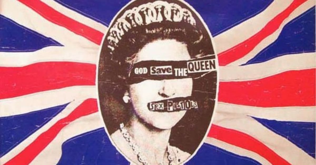 Una irreverente carátula de disco de los Sex Pistols.