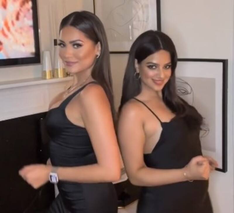 Andrea Meza y Harnaaz Kaur Sandhu, vestidas elegantemente de negro, interpretan una simpática coreografía (ver video abajo) mientras se escucha el tema "Vodoo", interpretado por J Balvin, Badshah y Tainy.