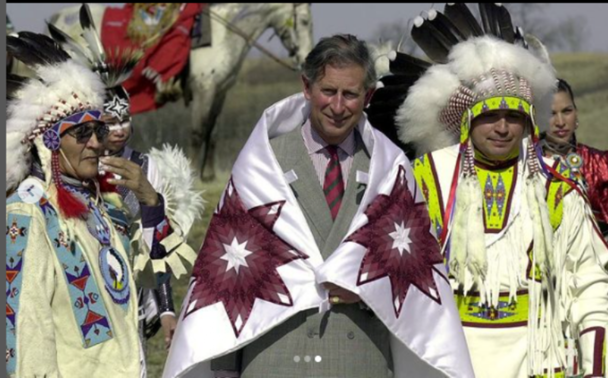Tras recibir el nombre de Kisikawpisim Kamiyowahpahmikroot, que significa "el sol vigila de buena manera", el Príncipe recibió un raro regalo de los ancianos indígenas durante una visita al Parque del Patrimonio de Wanuskewin en 2001.