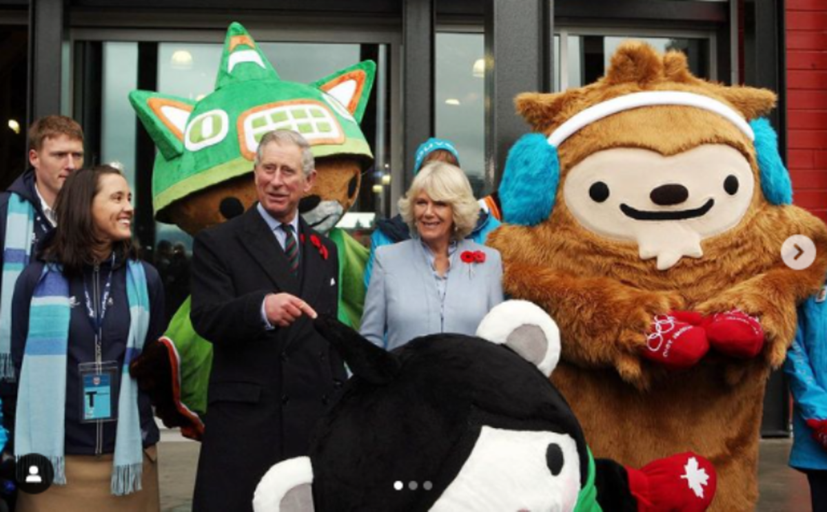 La provincia más occidental de Canadá ha sido visitada oficialmente por el Príncipe de Gales en cinco ocasiones, y la Duquesa se unió a él en 2009. Durante su estancia en la provincia, Sus Altezas Reales visitaron la villa olímpica de invierno en Vancouver. En la foto posa con las mascotas de las Olimpiadas Quatchi y Miga.