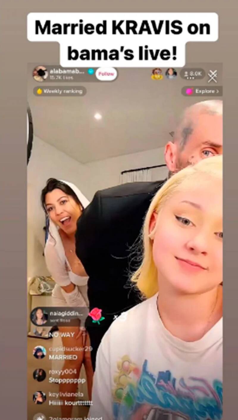 Desde tempranas horas de este lunes 16 de mayo, han surgido diferentes rumores que confirman que Kourteney Kardashian y Travis Barker se habrían casado en una boda secreta en Santa Barbara, California. Algo que pudo comprobarse por diversas fotos que se han difundidos en las redes sociales, pero también debido a que la hija del músico transmitió en vivo la ceremonia.