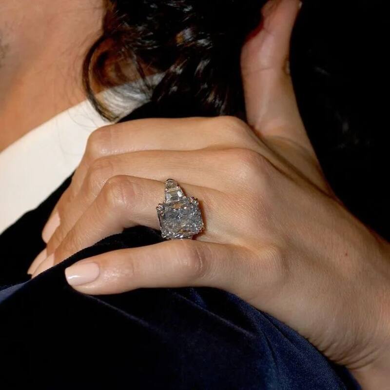 Los expertos aseguran que el diamante central, de corte princesa, rodeado por dos baguettes cónicas, lo hace muy similar al que Anthony le dio a JLo con un diamante en color azul de 8.5 quilates que tuvo un costo mucho más elevado que la que recientemente entregó el músico a quien será su cuarta esposa.