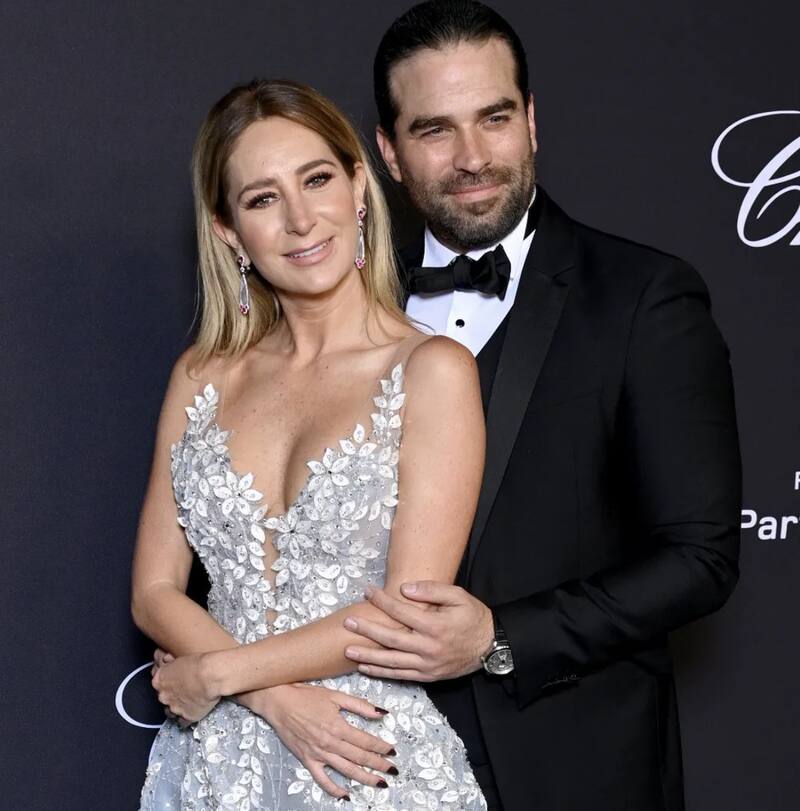Bazan usó un vestido de los diseñadores mexicanos Víctor & Jesse de corte princesa con la falda en tono azul y en la parte superior con aplicaciones en motivos florales, completó su look con el cabello suelto, maquillaje natural y aretes Chopard. Mientras que Alejandro opto por un clásico traje negro de tres piezas que completó con una camisa blanca y moño negro.