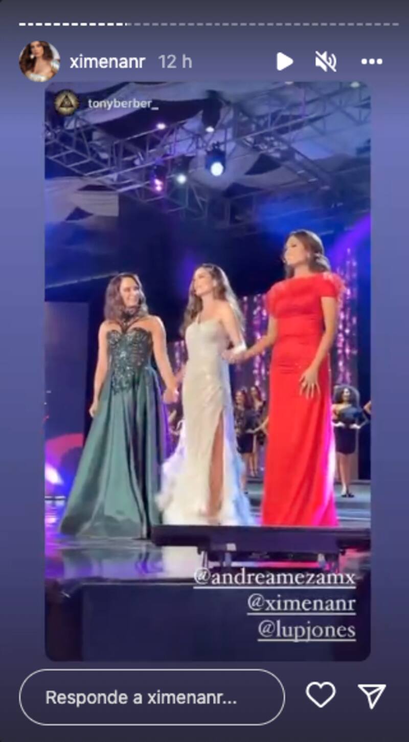 Por su parte, Ximena Navarrete también usó sus historias de Instagram para expresar lo especial que fue la reunión con Jones y Meza en el escenario de la final de Mexicana Universal donde Irma Miranda fue la elegida para representar a México en la próxima edición de Miss Universo.