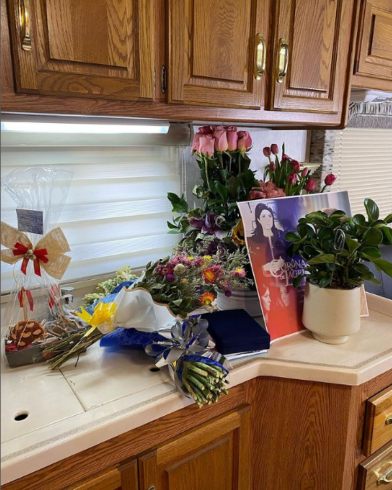 En otra de las capturas se observa su cocina con gabinetes de madera y en otra, donde aparece al lado de José Eduardo, se alcanzan a percibir sus escaleras, y un sofá gris, espacio que acostumbra decorar con cuadros y flores.