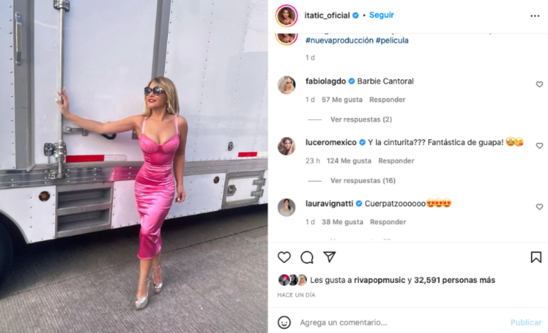 No sólo la ex esposa de Mijares reaccionó a la imagen, otras famosas también comentaron la publicación en Instagram: la actriz Laura Vignatti escribió “Cuerpatzoooooo”, Andrea Noli comentó “Hermosisíma!!! Cinturita de avispa amiga!!!”, Fabiola Guajardo bautizó a Itatí como “Barbie Cantoral”.
