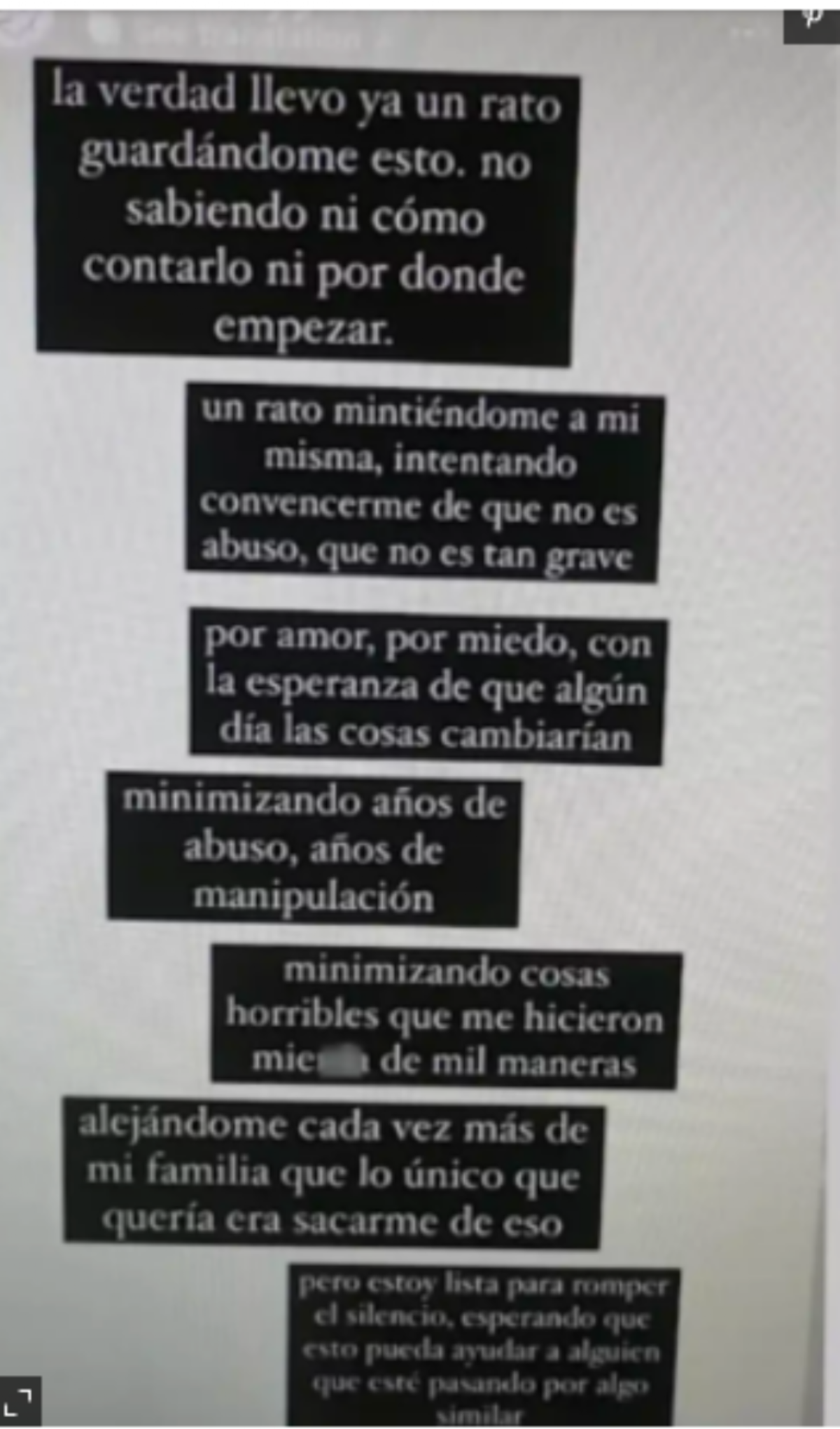 “Minimizando cosas horribles que me hicieron mie%$# de mil maneras, alejándome cada vez más de mi familia que lo único que quería era sacarme de eso. Pero estoy lista para romper el silencio, esperando que esto pueda ayudar a alguien que esté pasando por algo similar”, escribió la joven.