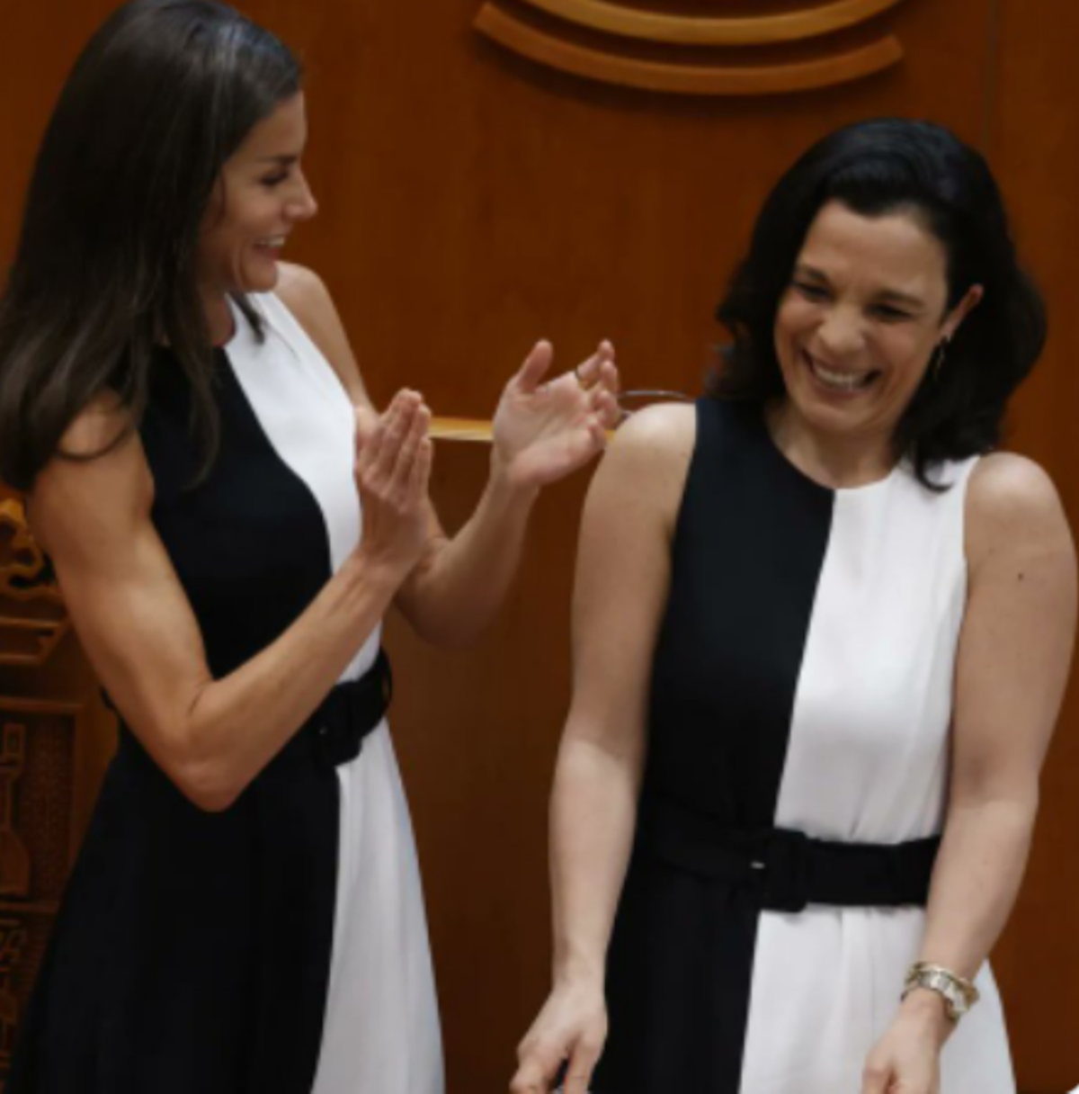 Con su vestido de la firma Mango, con color negro de un lado y blanco del otro, lnmaculada se acercó a recoger su reconocimiento y dejó ver que se sentía un poco avergonzada por lucir igual que Letizia, con esta prenda de 53 dólares (1,063 pesos mexicanos).
