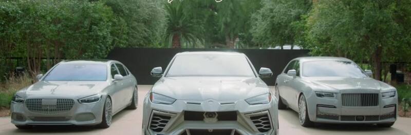Cerca de la cancha hay un jardín, a esto lo llama "un prado" en el que han cultivado fruta y verdura. Finalmente enseñó el lugar más preciado que tiene, que se localiza detrás de la mansión: un garage al aire libre en el que estaciona los tres autos que más le gustan; todos son en color gris "para que combinen con la casa". Los lujosos vehículos son: Lamborghini Urus, Rolls-Royce y el Maybach Sedan, su "bebé favorito en el mundo".