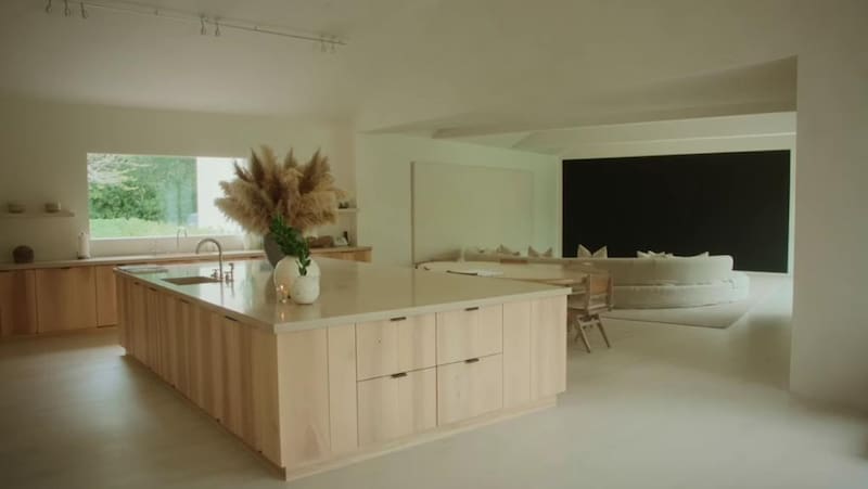 La revista Vogue platicó a la empresaria desde su mansión en Hidden Hills, Los Ángeles, en donde grabaron los sitios más importantes y lujosos que hay dentro. Los acabados son en color crema, al gusto de la modelo, quien quiso que cada parte de su espacio combinara con esta tonalidad.