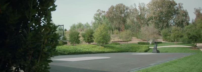 El lugar cuenta con alberca y una cancha de basquetbol que tuvo un diseño especial. "Este el mejor lugar de todo en donde los niños pasan el rato", mencionó. "No quería la típica cancha de básquetbol, los materiales de este suelo es como esponjoso, quería los colores neutros, la cancha es negra, la canasta es negra con algo de color crema, quería que combinara con toda mi casa", añadió.
