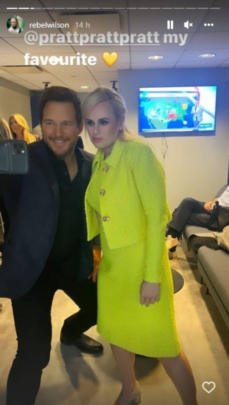 “Le enseñé a Rebel Wilson cómo hacer una cara de: 'estoy a punto de ser devorada por un dinosaurio', ¿Qué tal lo hizo?”, escribió Pratt en sus stories de Instagram que también fue compartida por la comediante.