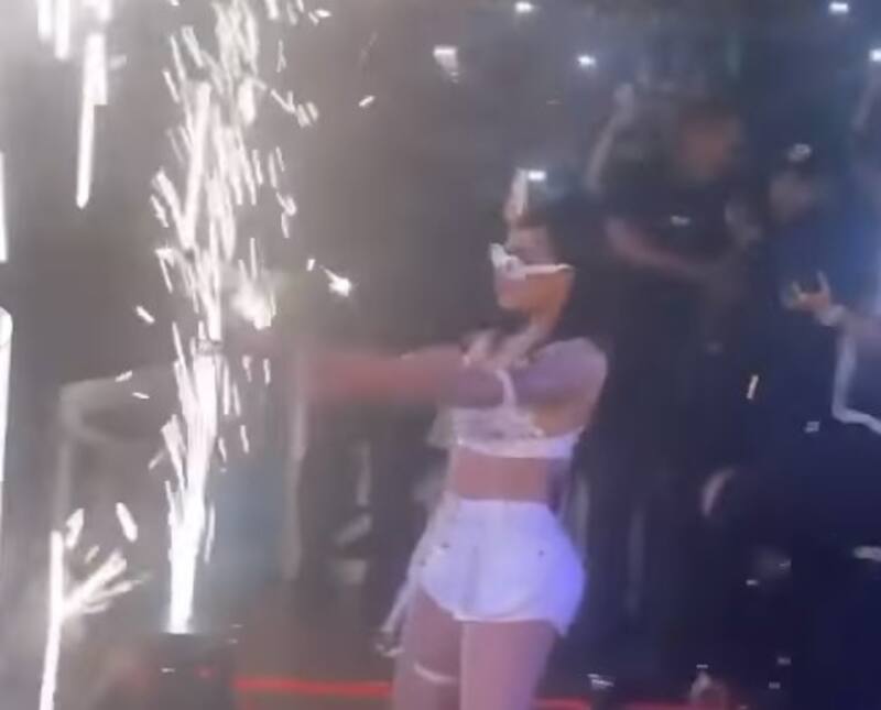 Pero un nuevo incidente sobre el escenario la ha puesto en la primera línea de los videos virales. Mientras efectuaba un nuevo show en un local de mediana concurrencia, la cantante interpretaba un tema cuando se acercó a la esquina del proscenio, y se ubicó cerca de una de las máquinas que lanzan humo.