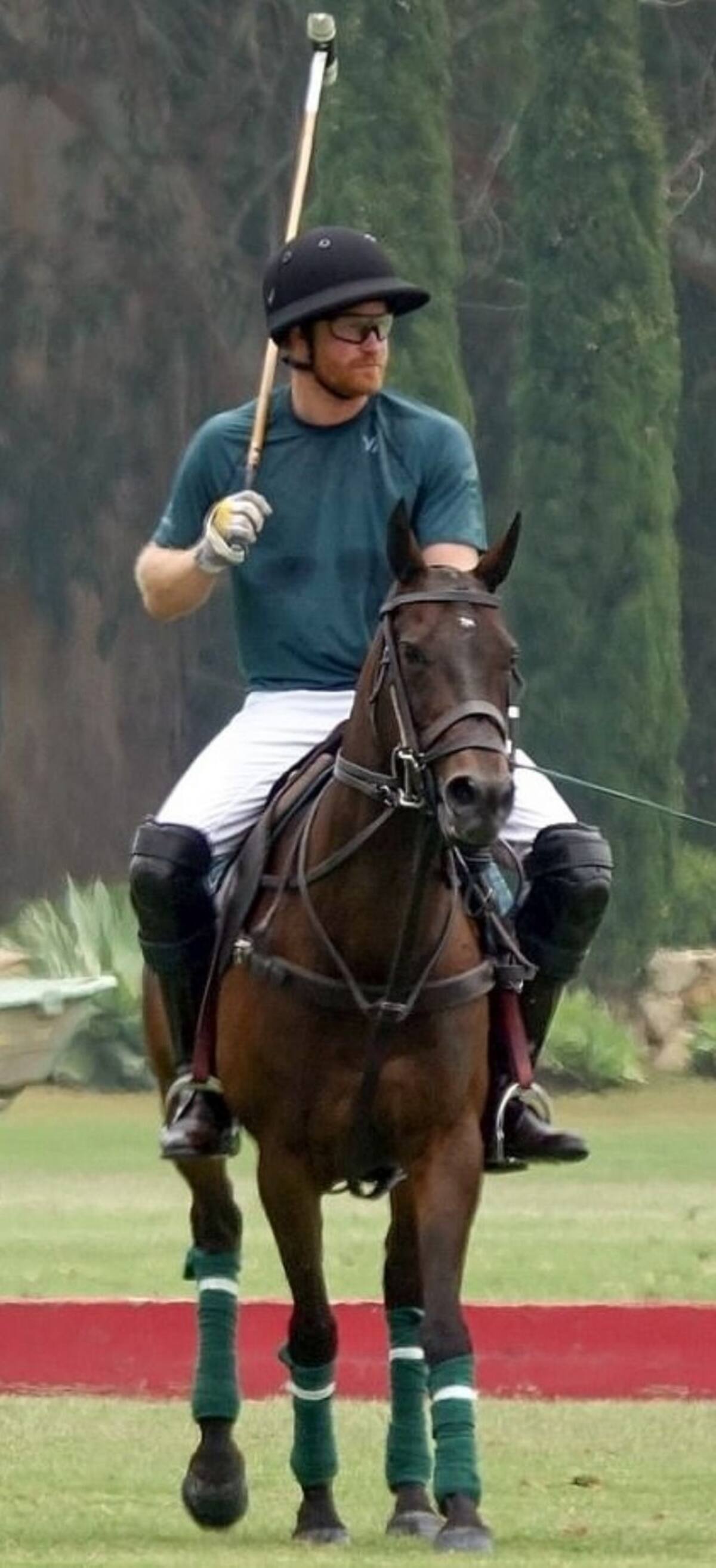 Son varias las fotos de un Harry sonriente con la playera verde, pantalones blancos, botas de montar negras y rodilleras sobre su caballo marrón. Además, el hijo de Lady D aparece siempre con casco y gafas protectoras. El viernes, el equipo de Harry perdió por 12-8 contra Dundee II y son Meghan en las tribunas.