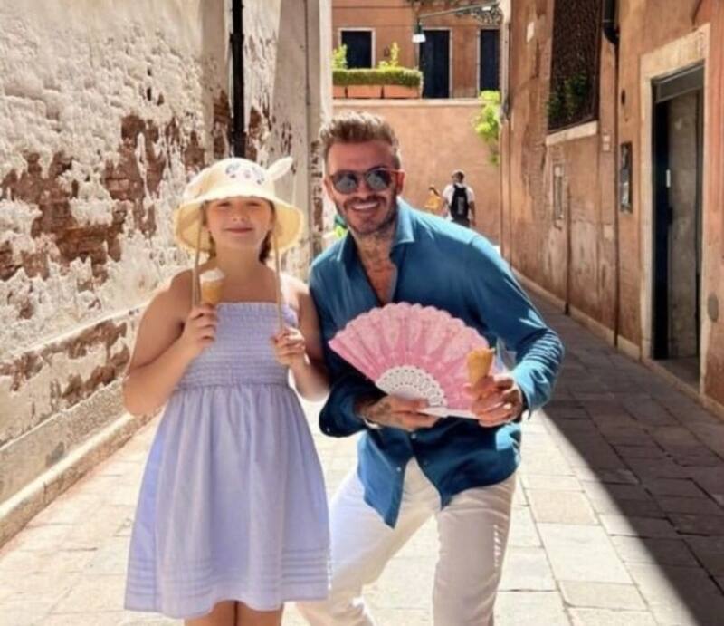 En el video, sorpresivamente aparece Harper, su hija. "Creando especiales momentos al lado de Harper Seven", agregó el ex futbolista quien está paseando por las calles de Venecia con la más pequeña de su familia. En la grabación que subió, ambos se muestran felices comiendo helado.