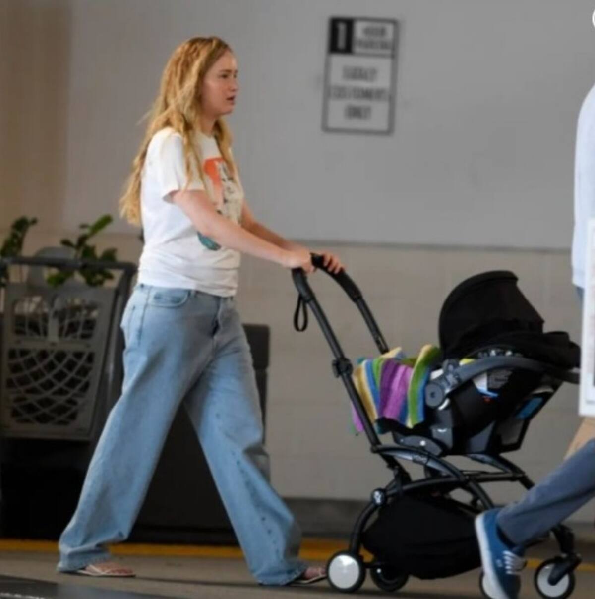 Hasta hace unas horas, aquella había sido la última vez que se supo de Lawrence y su familia. A través de redes sociales han circulado fotografías de la protagonista de Los juegos del hambre paseando a su bebé en una carriola y quien la acompaña es su esposo, Cooke Maroney.