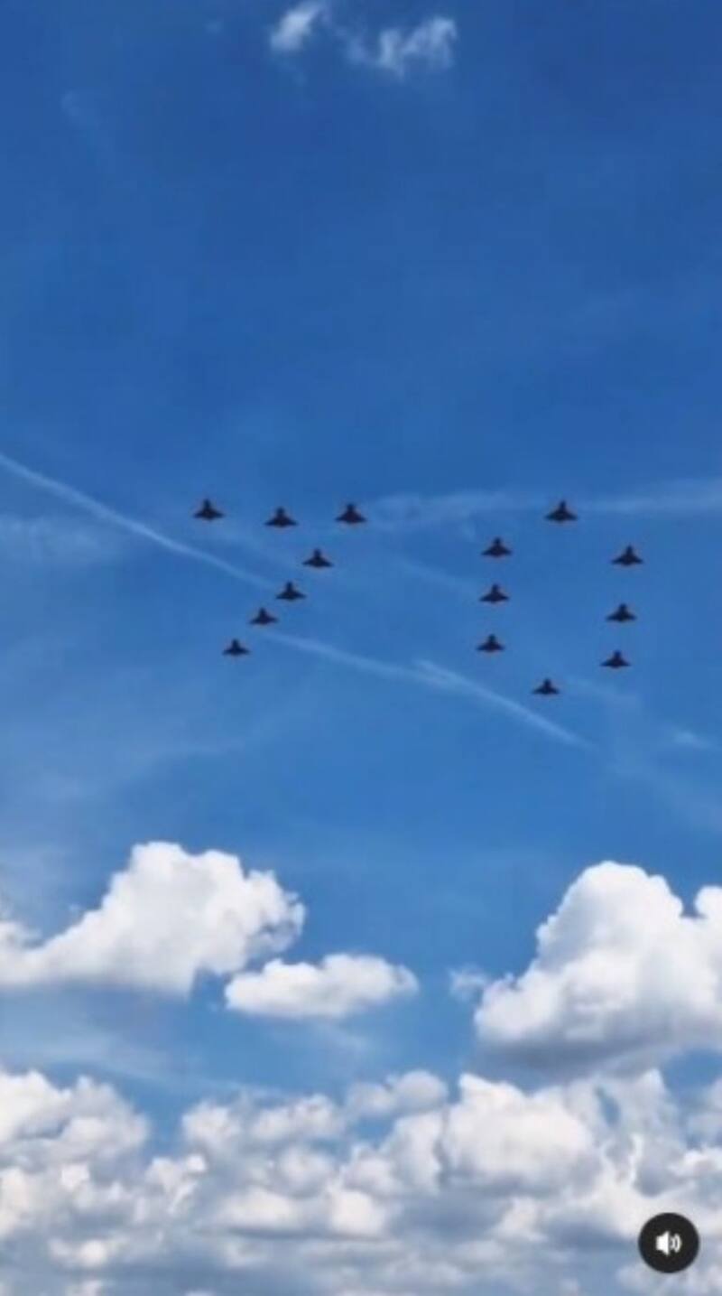 Los miembros de la realeza pudieron observar a los aviones que en el cielo formaron el número 70, en conmemoración a los años de reinado. Mientras avanzaban, mantenían la formación sin perder el número, posteriormente dejaron escapar humo en color blanco, rojo y azul. Momento único que la reina Isabel II disfrutó lanzando una gran sonrisa.