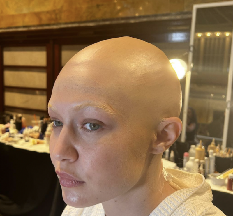 Pero el drástico cambio de apariencia no fue permanente, sino un gran trabajo del departamento de maquillaje, quienes ocultaron el pelo de las hermanas con prótesis de silicón para que pareciera que estuvieran rapadas y el pelo negro fue gracias a una peluca.