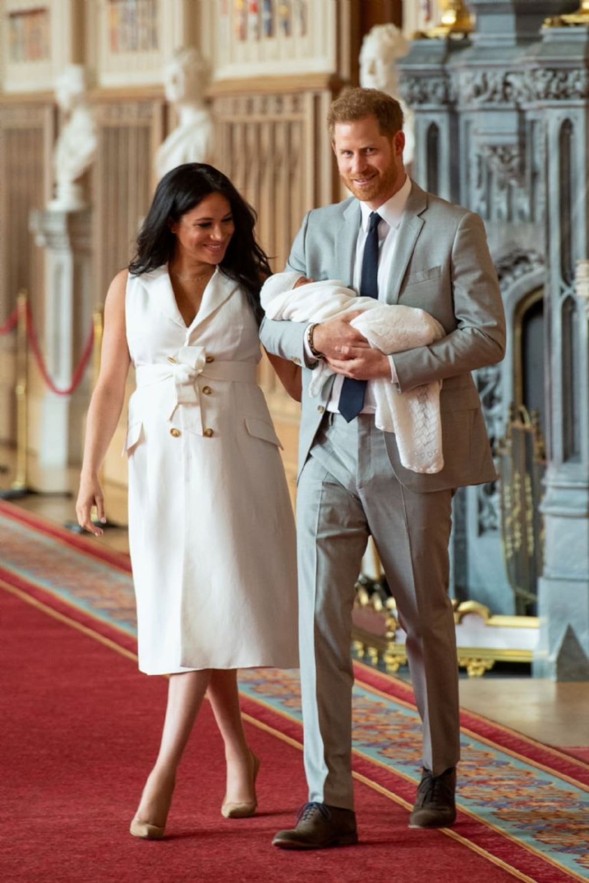 8 de mayo de 2019: el príncipe Harry y Meghan Markle aparecen en una sesión fotográfica con Archie en el castillo de Windsor. Cuando se le pidió que expusiera más de la cara de su bebé a las cámaras, Harry bromeó: "Él también tiene un poco de vello facial. ¡Maravilloso!".