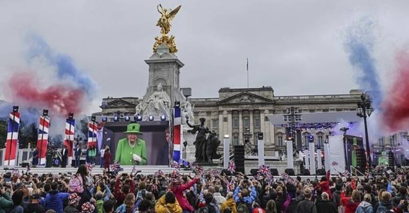 Rodeada por su familia, incluidos el príncipe Carlos y su esposa Camila Parker; los duques de Cambridge y sus hijos George, Charlotte y Louis, y miles de simpatizantes, la Reina recibió los vítores después de aparecer en el balcón.