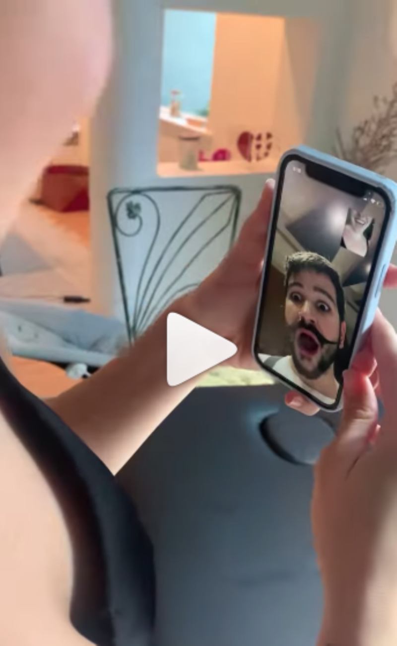 En el video se ve a la mamá de Índigo hacerle una videollamada a a su esposo e inesperadamente enfocó su pecho diciendo "sorpresa" ya que fue en la clavícula que se puso el nombre de Camilo.